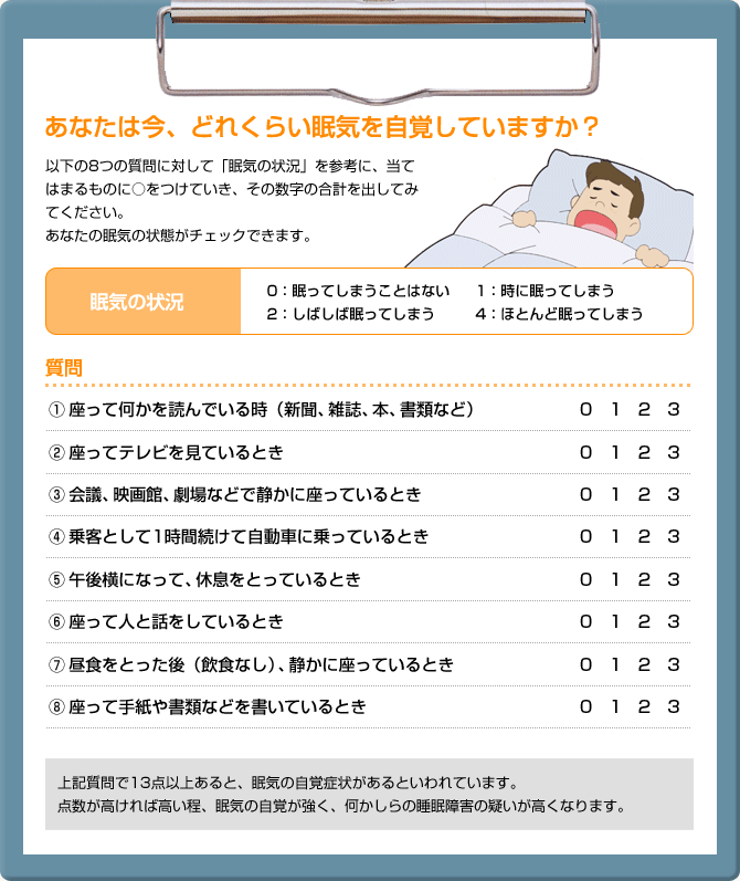 起床時の頭痛、頭重・倦怠感、集中力・記憶力の低下、日中の眠気、交通事故、生産性の低下、作業ミスによる労働災害