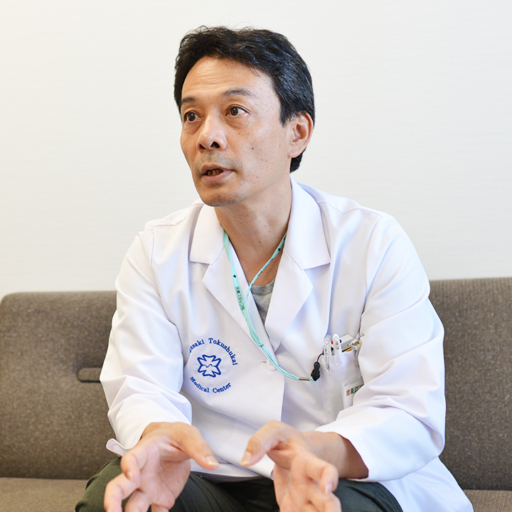 私は2018年4月1日から病院長に就任しました。ここに来る前は千葉の徳洲会グループの病院でお世話になっていました。専門は泌尿器科で、現在も外来で診察をしています。