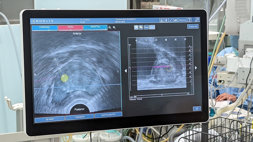 前立腺がん診断の際に、より正確な前立腺針生検をサポートするシステムとして開発された超音波画像診断装置です。