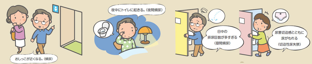 - おしっこがしたくなりもれそうになる:尿意切迫感