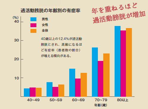 過活動膀胱の症状を持っている人は年齢とともに増え、810万人もいることがわかりました。